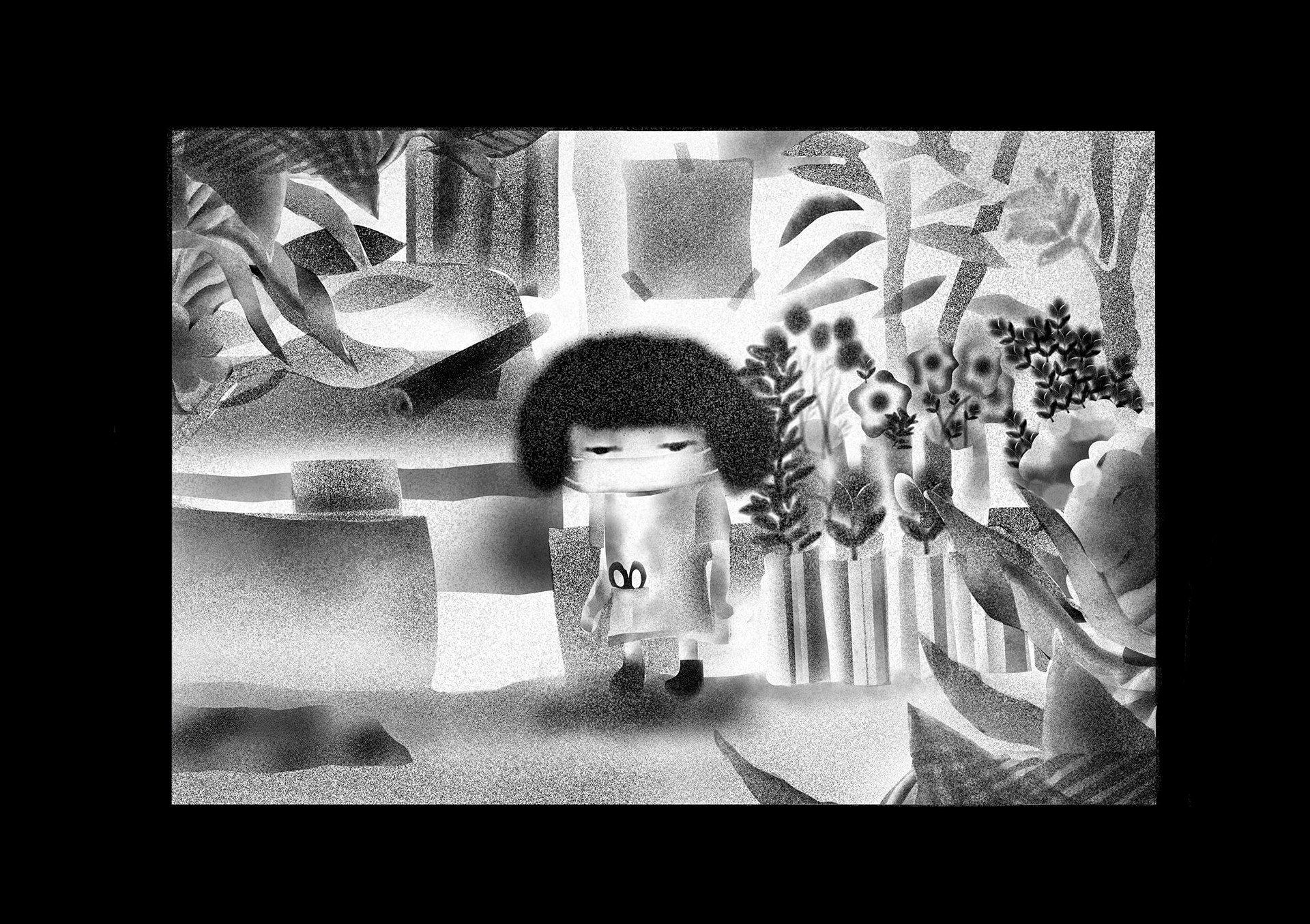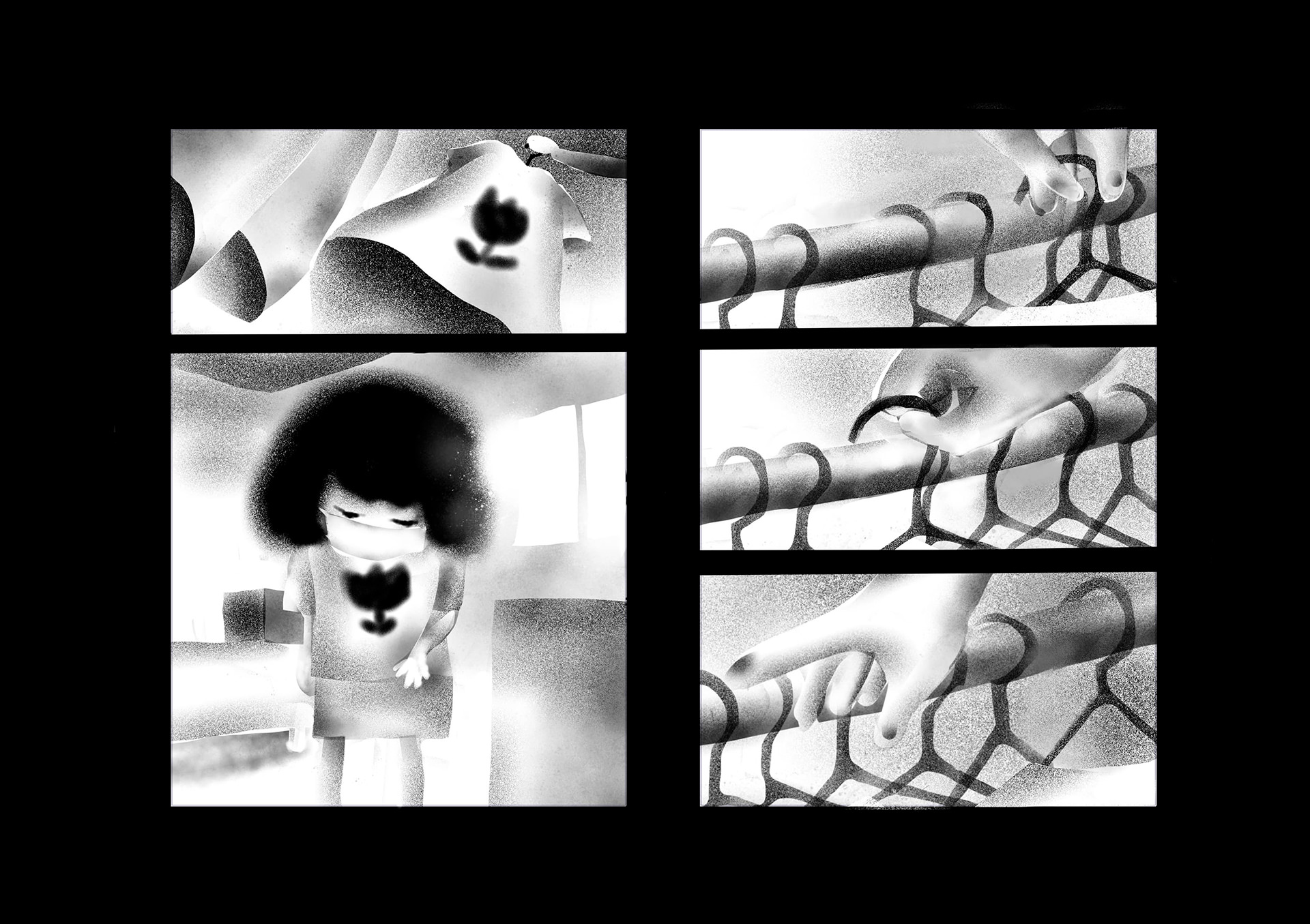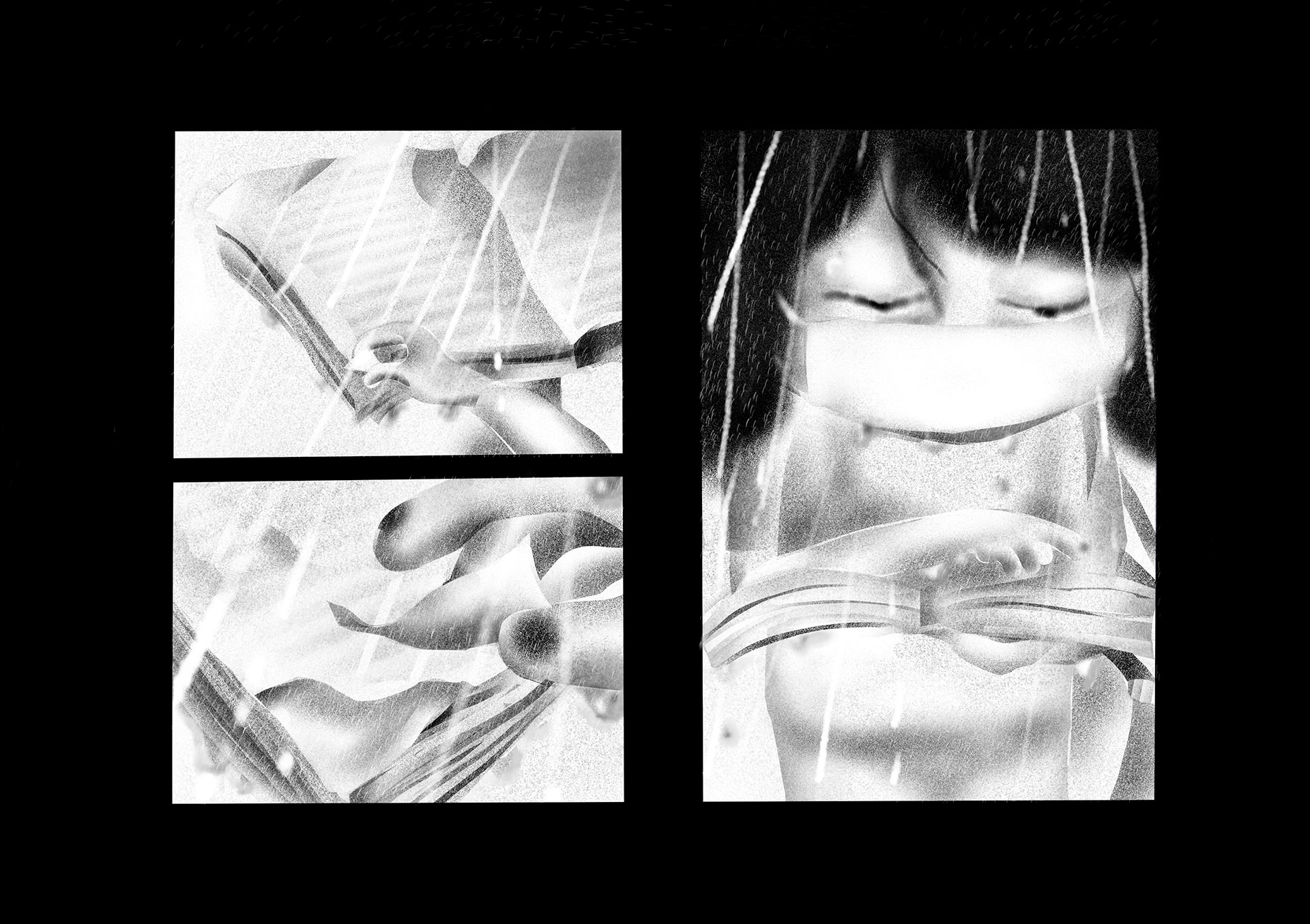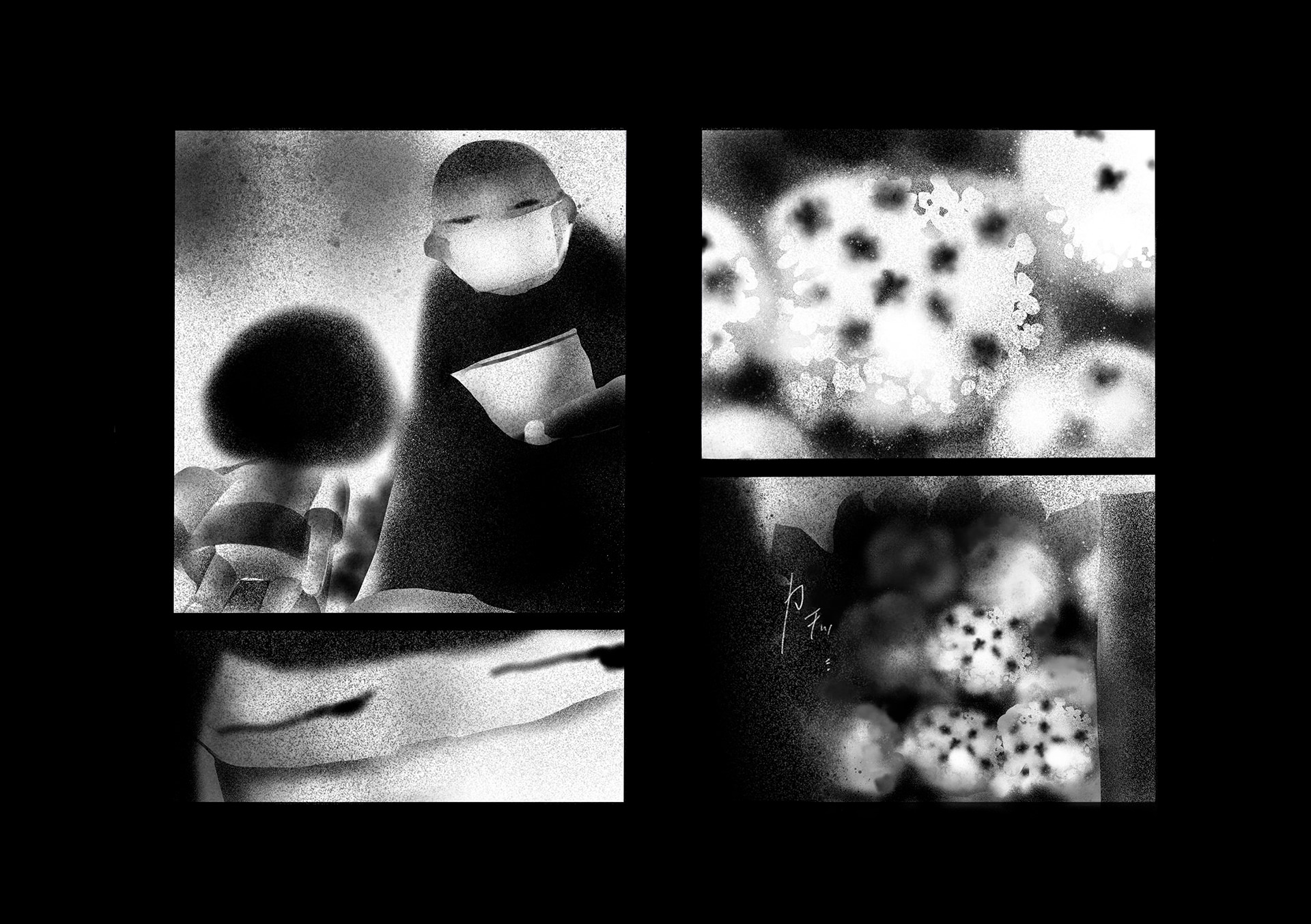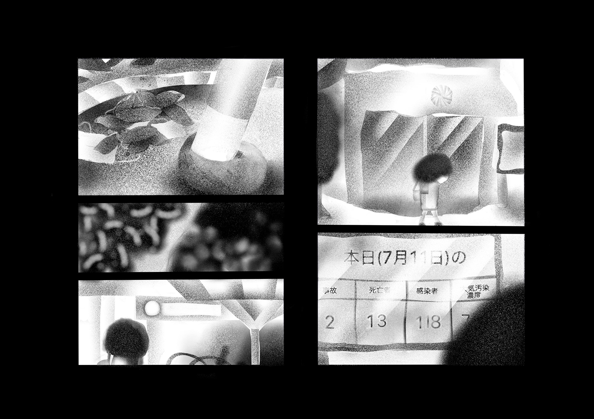 ウィルスや大気汚染で死に脅かされた世界。人間たちはコミュニケーションを削がれ、マスクをすることにより嗅覚も削がれ無機質化していった。そんな世界で主人公はある出来事をきっかけに、匂いを嗅ぐことによって様々な記憶のフラッシュバックを起こし本来の人間らしさを取り戻していく。本作は緊急事態宣言が発令された頃に執筆を開始し、約4ヶ月間をかけ制作。イラストレーターである平島桂子の漫画デビュー作となる。後編は年内に更新予定。