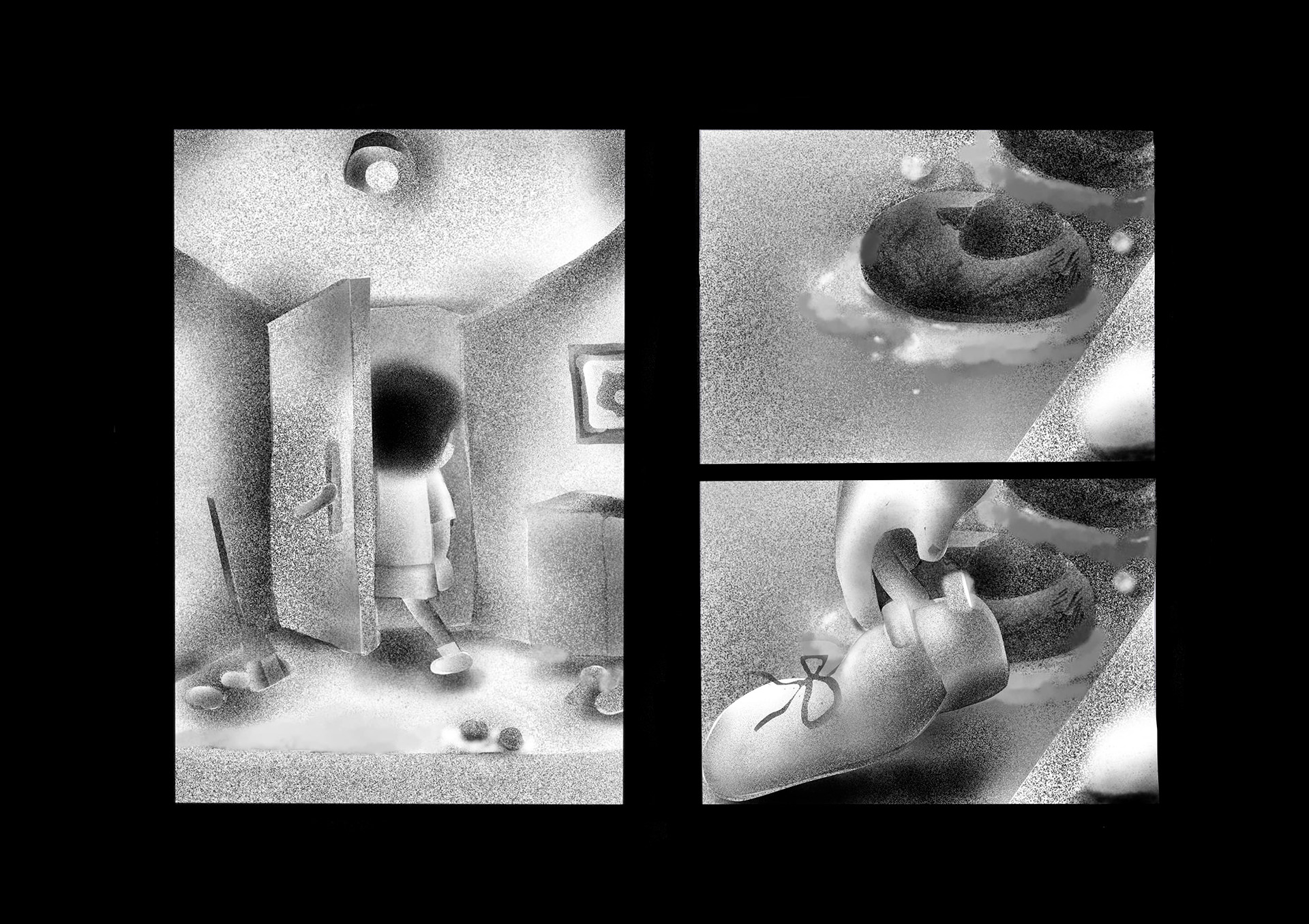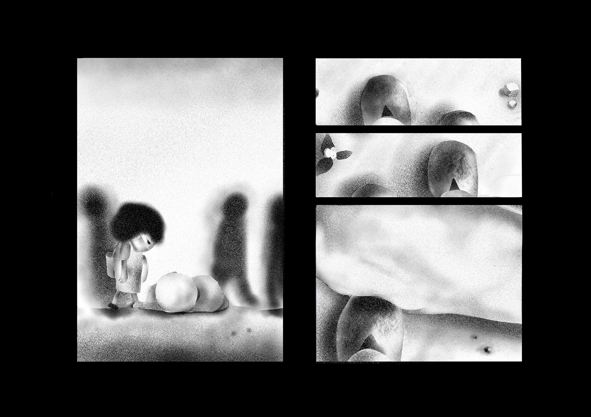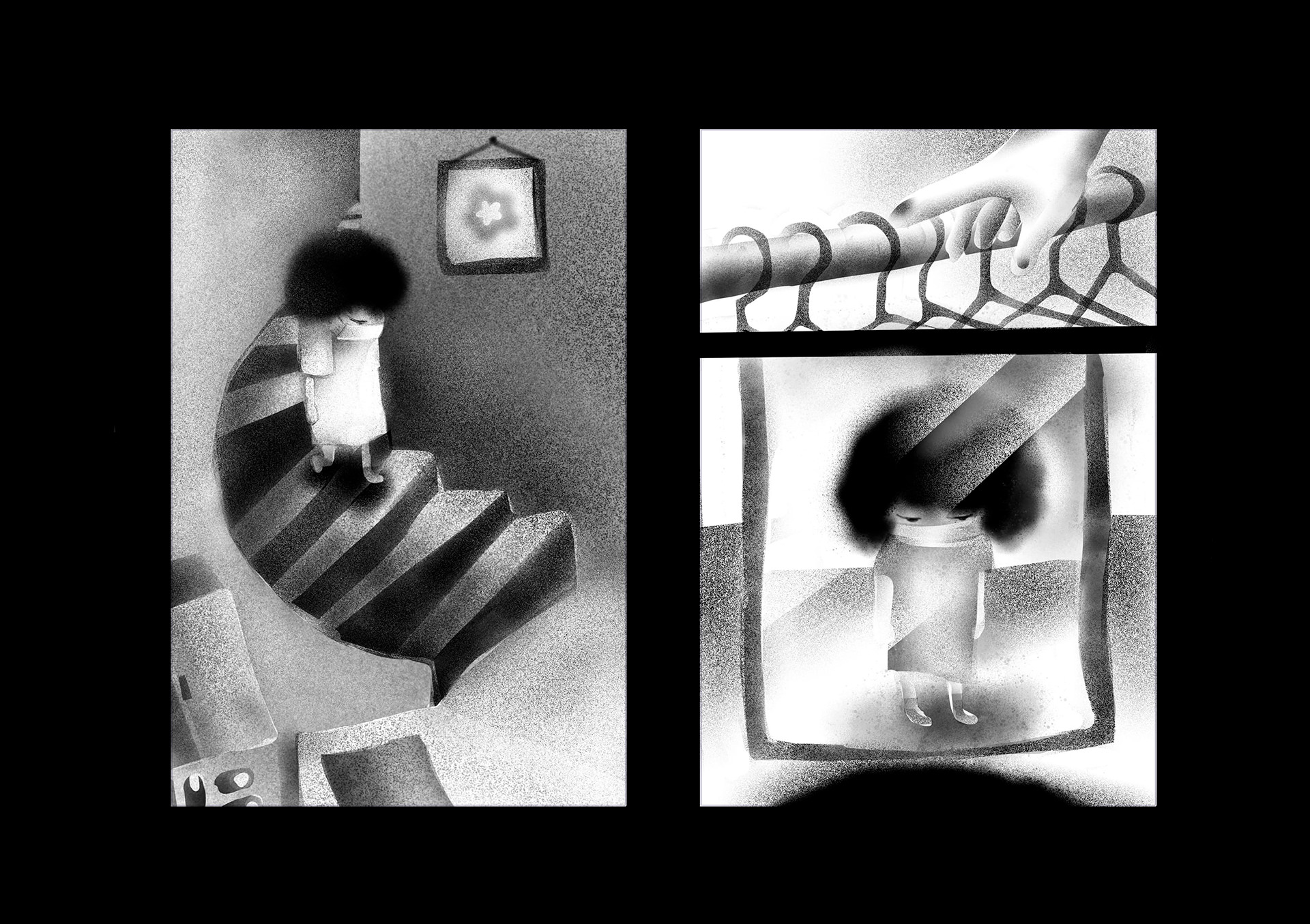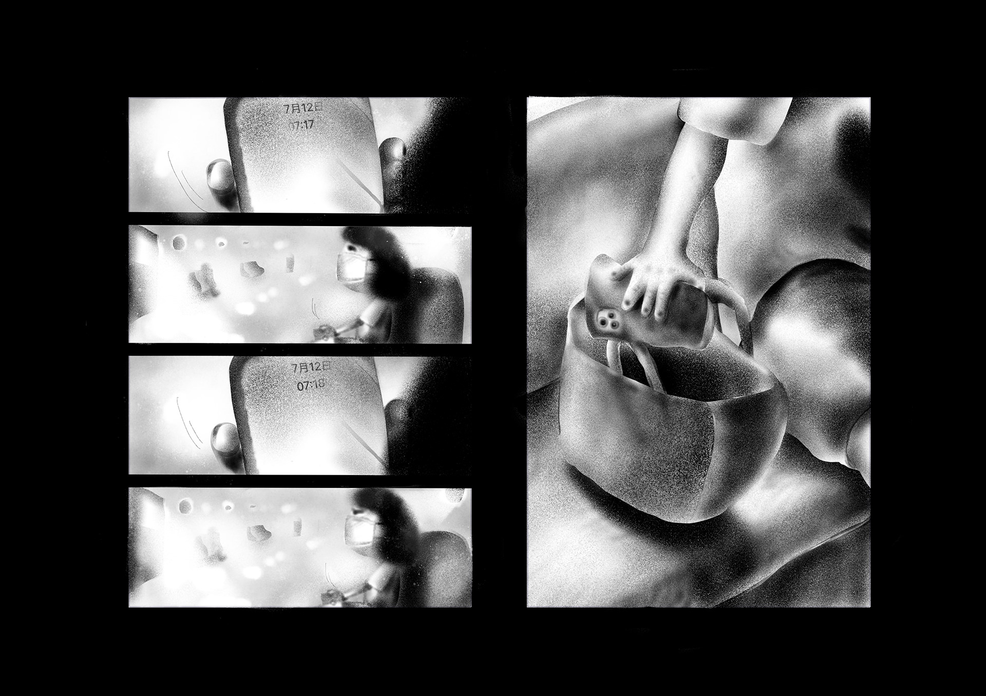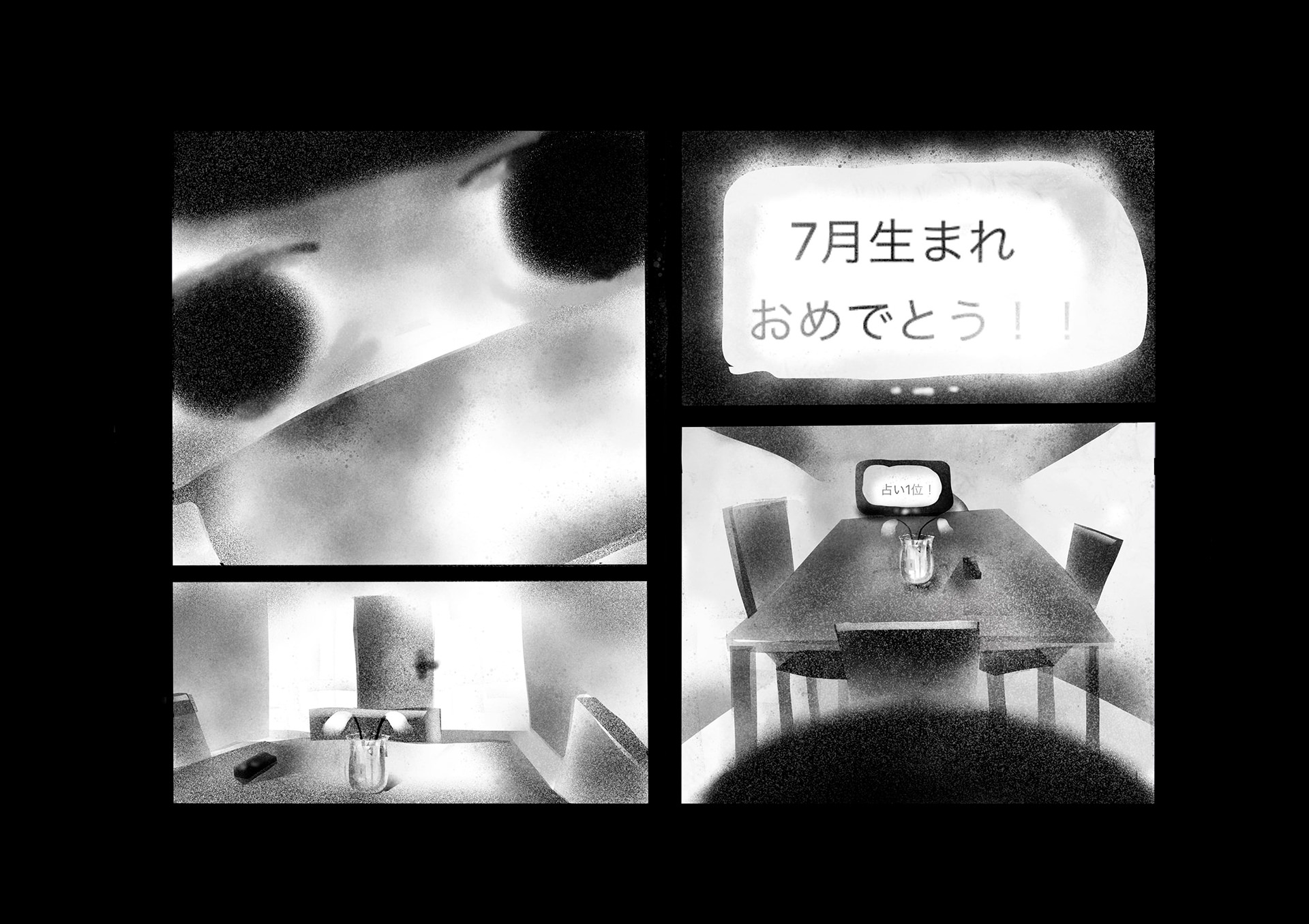 ウィルスや大気汚染で死に脅かされた世界。人間たちはコミュニケーションを削がれ、マスクをすることにより嗅覚も削がれ無機質化していった。そんな世界で主人公はある出来事をきっかけに、匂いを嗅ぐことによって様々な記憶のフラッシュバックを起こし本来の人間らしさを取り戻していく。本作は緊急事態宣言が発令された頃に執筆を開始し、約4ヶ月間をかけ制作。イラストレーターである平島桂子の漫画デビュー作となる。後編は年内に更新予定。